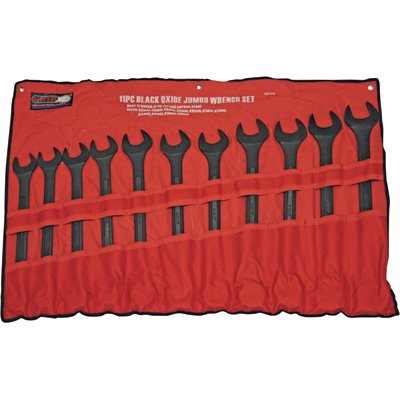 | Each Grip-On JUMBO wrench is constructed of drop-forged, heat-treated steel with black oxide finish to resist rust and corrosion. Precision-machined open and boxed ends in metric sizes. Wrench lengths range from 17 1/2in. to 23 1/2in. for heavy-duty applications. Raised panel provides added strength. Includes heavy duty roll-up storage pouch. Pieces (qty.): 10, Metric Size(s) (mm): 34, 35, 36, 38, 40, 41, 42, 44, 46, 48, 50, Material Type: Drop-forged steel, Finish Type: Heat-treated steel, Storage Type: Pouch ...Read