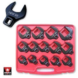 | Heavy-duty 1/2" crowfoot flare nut wrench tool set, includes 14 jumbo sizes. Each made of industrial quality, drop forged with heat treated chrome molly (Black impact). High impact blow molded storage case included ...Read